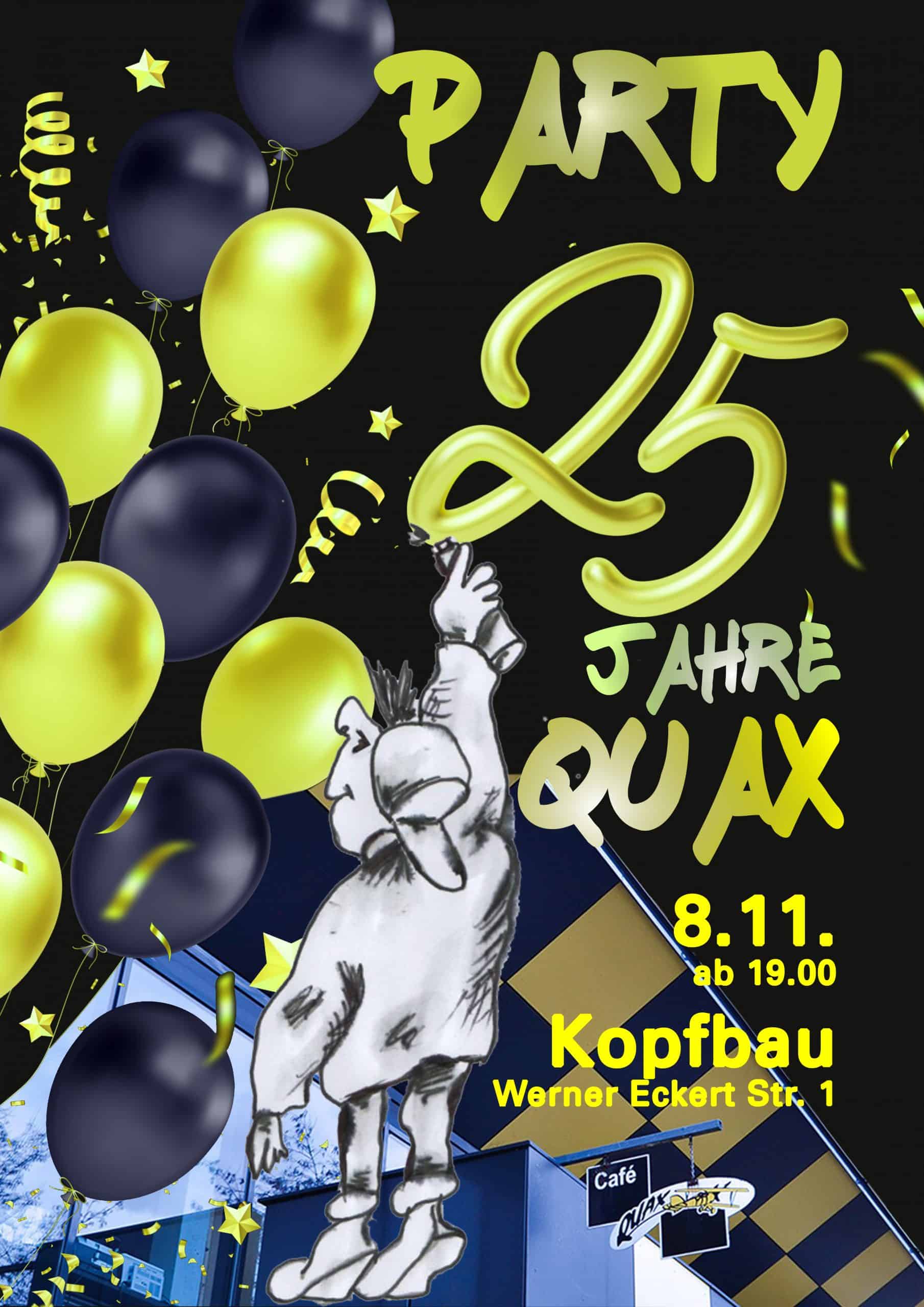 Am Samstag, 8.11.25 ab 19:00 Uhr: Große Geburtstagsparty – 25 Jahre QUAX! Feiert mit uns!