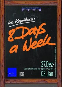27.12.: Eröffnung um 11 Uhr mit Weißwurst-Frühstück, ab 17 Uhr Party „8 days a week“!