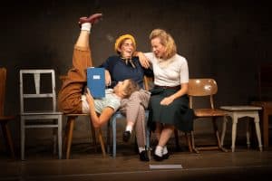 Das Theaterstück der Regisseurin Caroline Tajib-Schmeer ist für Zuschauer*innen ab 14 Jahren geeignet und zeigt ein lebendiges, eindrucksvolles und sehr persönliches Bild der Kriegs- und Nachkriegsjahre in Deutschland: Drei junge Mädchen schreiben im Jahr 1956 ihr Abitur und schreiben dabei bewegende Texte über ihre Erlebnisse im Krieg. Eines der Mädchen ist die Mutter der Regisseurin, die diese Aufzeichnungen im Jahr 1956 findet und beschließt, aus dem Stoff ein Theaterstück zu machen.
